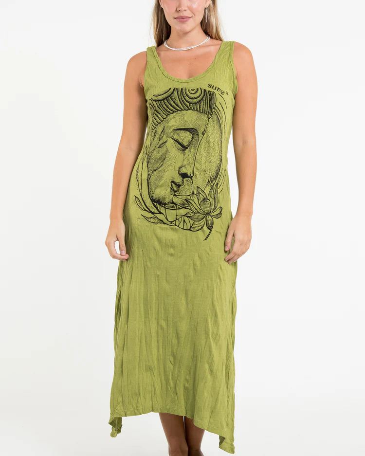 Wholesale Sure Design Womens Lotus Buddha Long Tank Dress in Lime