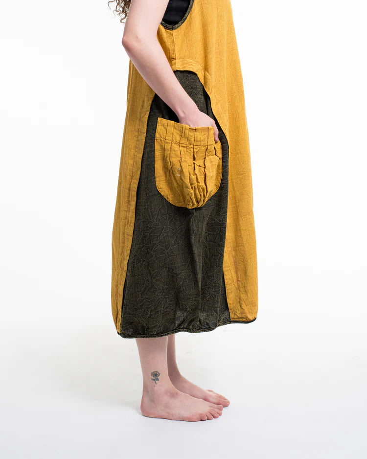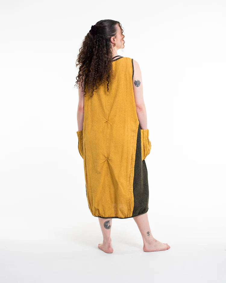 Easy, flowy, and full of personality. This sleeveless balloon dress is perfect for relaxed days with a creative edge. Made from textured stonewashed cotton in bold colorblock panels, it features roomy side pockets, a rounded hem with subtle gathering, and a laid-back silhouette that flatters all body types.