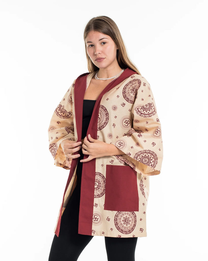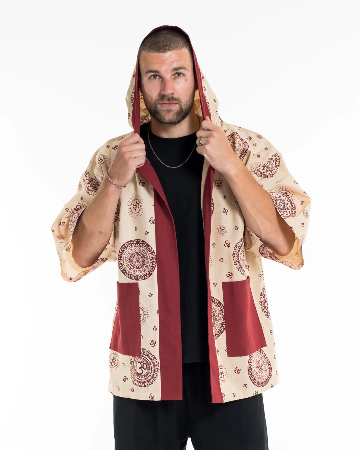 Wholesale Unisex Ohm Print Cotton Hoodie Kimono Cardigan in Red