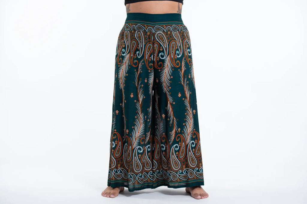 Wholesale Plus Size Paisley Feathers Palazzo Style Harem Pants in Green