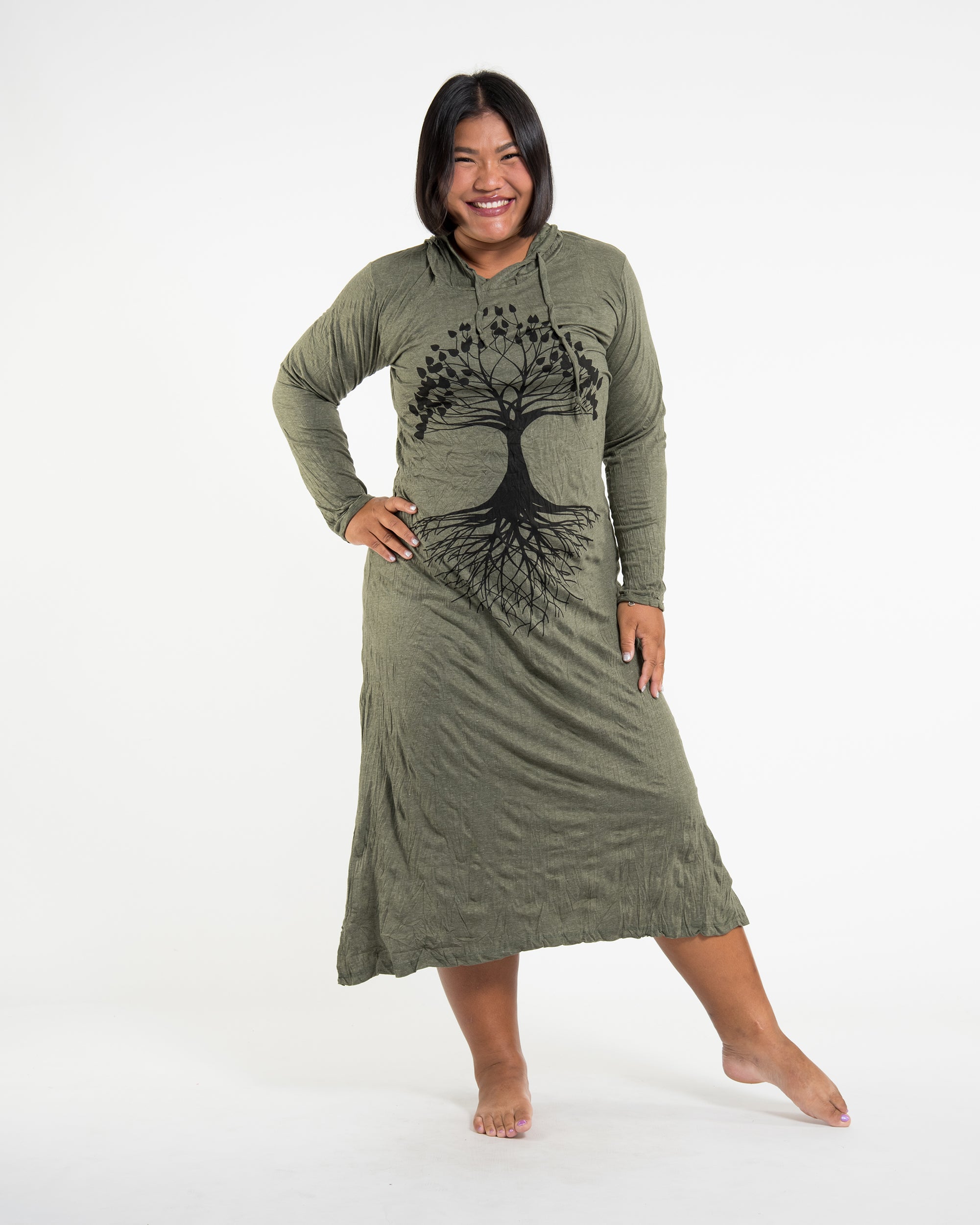 Wholesale Sure Design Womens Tree Of Life Long Sleeve Hoodie Dress Green L/XL