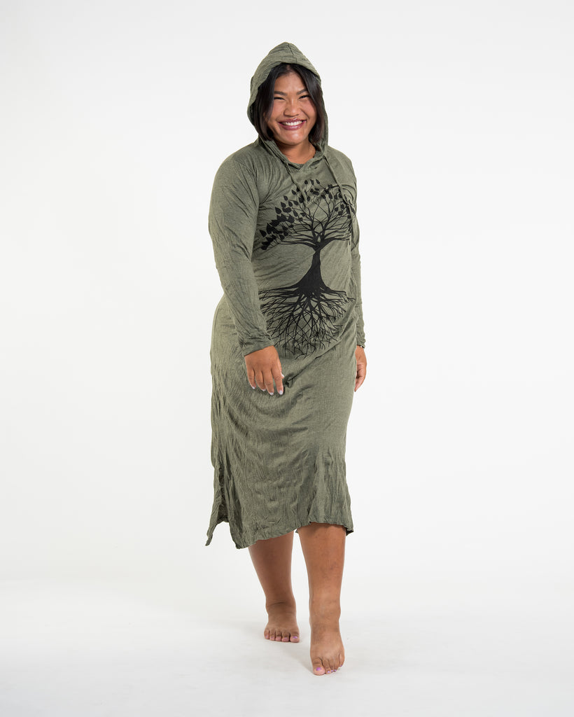 Sure Design Womens Tree Of Life Long Sleeve Hoodie Dress Green L/XL