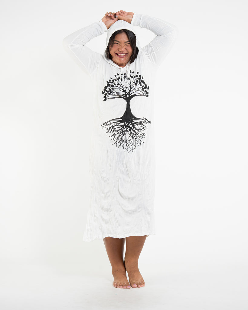 Sure Design Womens Tree Of Life Long Sleeve Hoodie Dress White L/XL