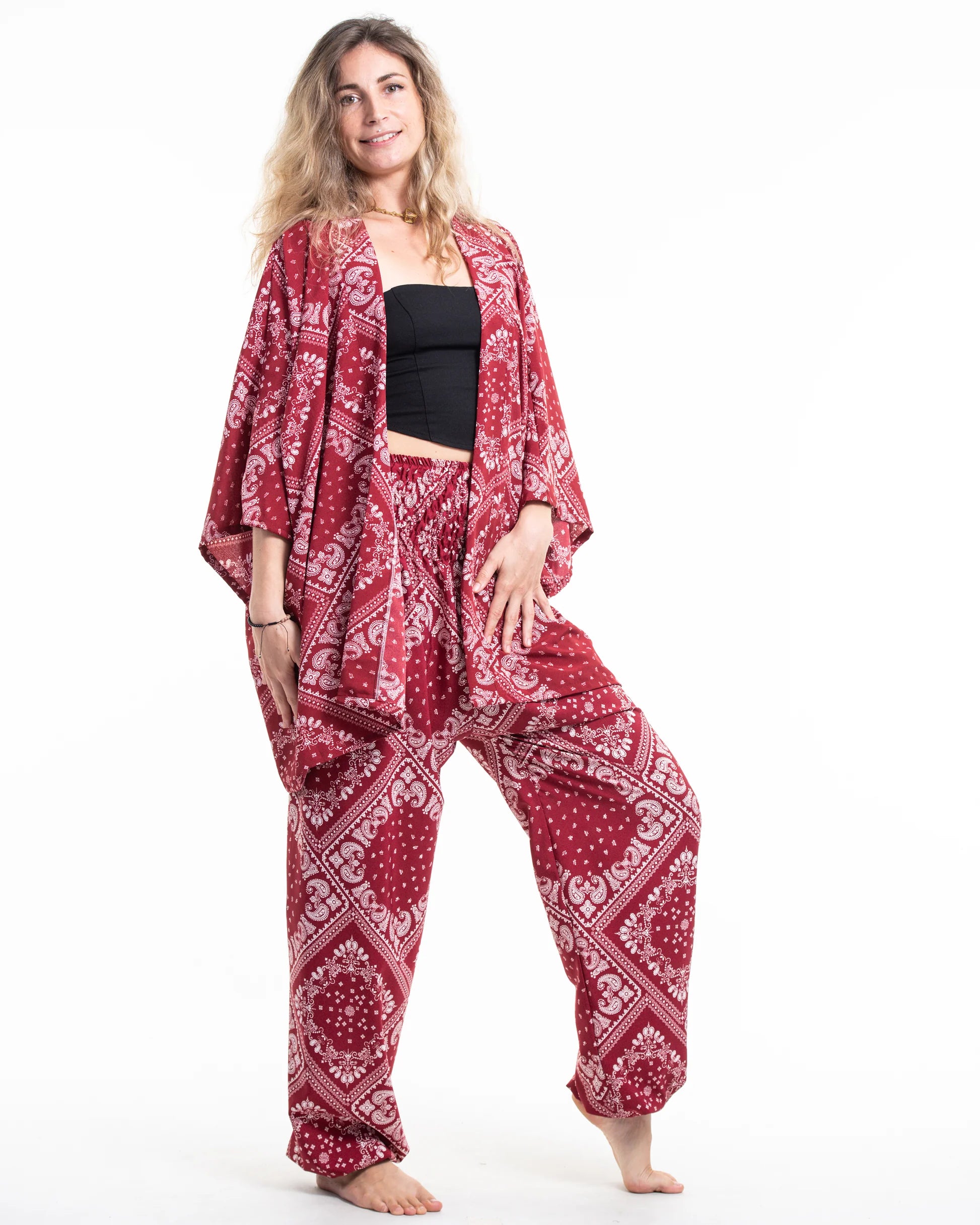 Wholesale Unisex Patchwork Paisley Lounge Set in Red
