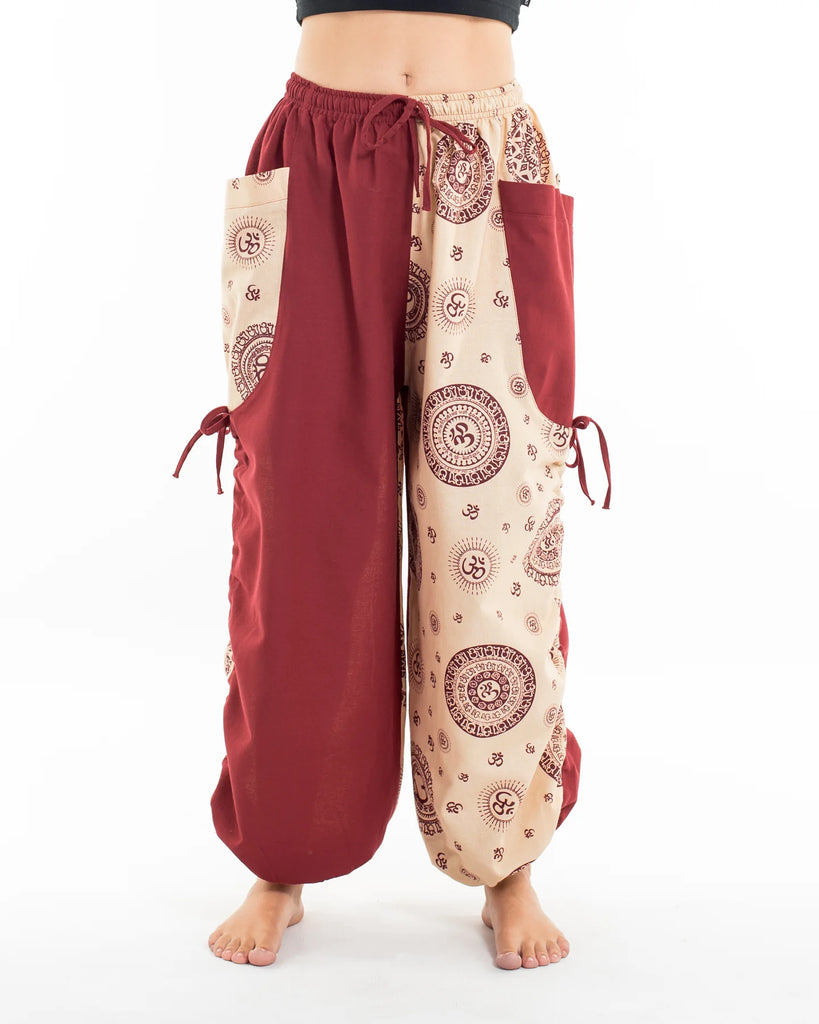 These comfy pants are made from lightweight cotton, featuring the sacred Om prints created with a discharge dye process for a mindfulness look and a spiritual feel.